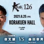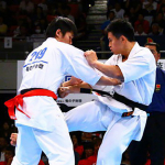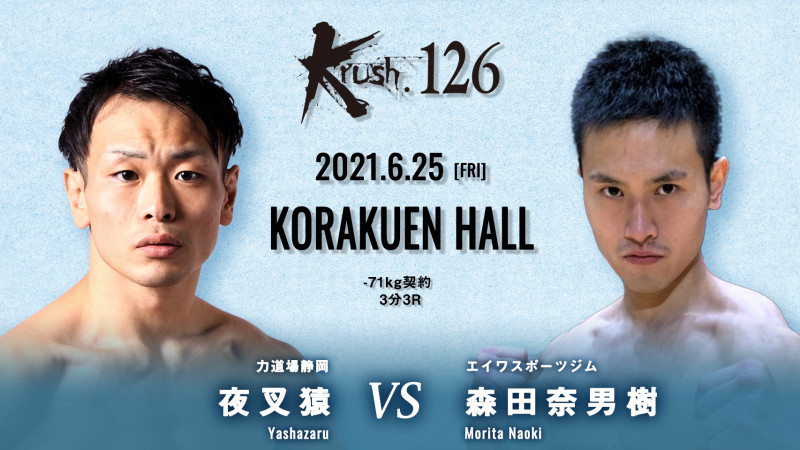 夜叉猿(左)とJFKOフルコン空手全日本大会で優勝した森田が対決する