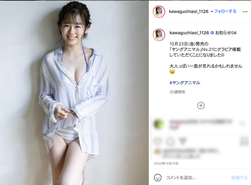 昨年10月、ヤンングアニマルで大胆グラビアに挑戦した川口葵(川口葵インスタグラムより)