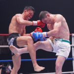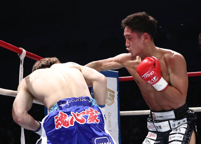 林(右)が過激格闘技ラウェイ王者の金子(左)をパンチでKO=19年11月