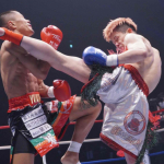 3月武道館大会で鷹大に打ち込まれる玖村の右ストレート