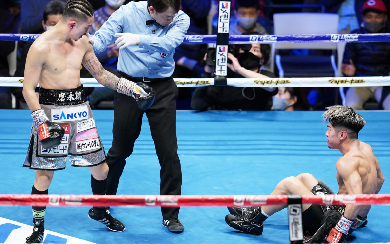 ”激アツ”ダウンした田中に上から「来いよ!」と手招きする井岡(Naoki Fukuda)