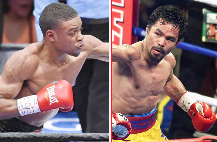 無敗の統一王者スペンス(左)と現休養王者のパッキャオが対戦(Photo: Naoki Fukuda)