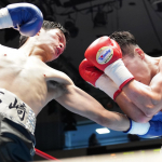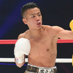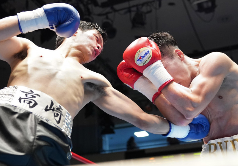 前戦で長身の相手に左のボディアッパーを叩き込む竹田。そして左アッパーをアゴに決めKO勝利した(C)Naoki Fukuda