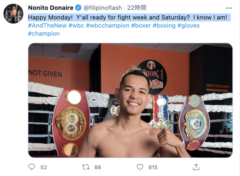 ドネアは準備万端と調子は良さそう(ドネアのTwitterにて)