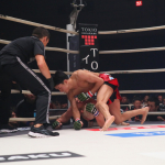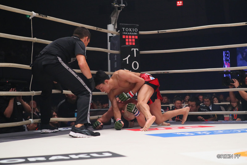 グラップラー・佐々木憂流迦に容赦なくパウンドする海、アゴ骨折させTKO勝利した=19年