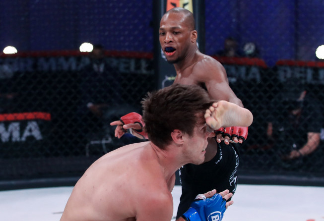 ペイジが左ハイキックをヒットさせ鼻を陥没させた衝撃の瞬間!©️Bellator