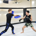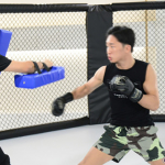 山本美憂の夫・アグォンと激しい打撃戦を行うクレベル(右)
