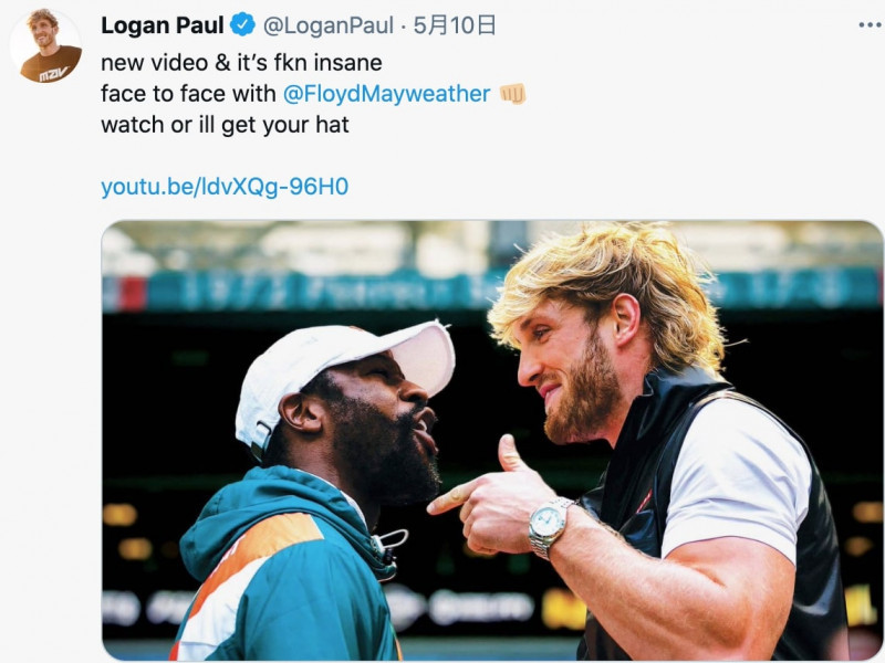 メイウェザー(左)とフェイスオフする“お騒がせYouTuber”ローガン・ポール(右)
