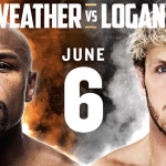 メイウェザー(左)とフェイスオフする“お騒がせYouTuber”ローガン・ポール(右)(ポールの公式SNSより)