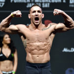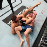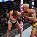 オリベイラのパンチを直撃し崩れるチャンドラー(左)©️UFC