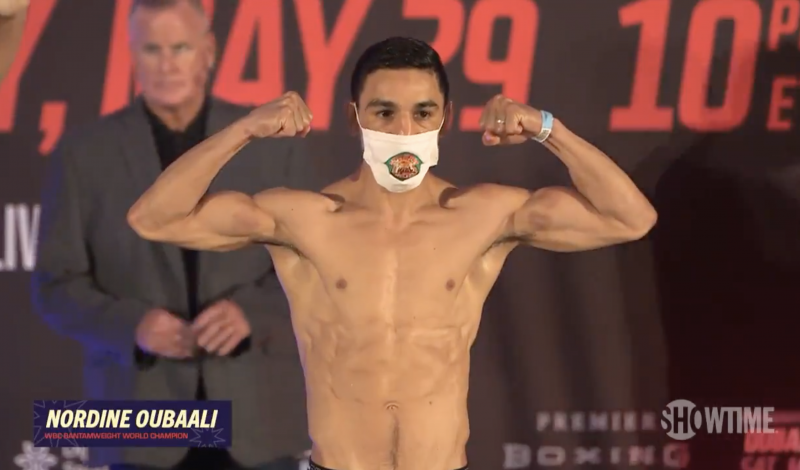 ウバーリの今回のマッスル度! WBCベルトデザインのマスクで計量パス(@premierboxingより)