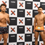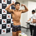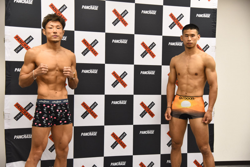 フェザー級キング・オブ・パンクラス・チャンピオンシップで対戦する王者・ISAO(左)と中島太一(右)は共に計量をパス
