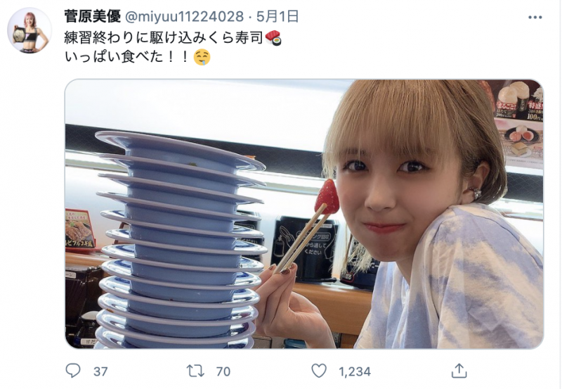 菅原が回転寿司で皿を重ねる(@miyuu11224028)