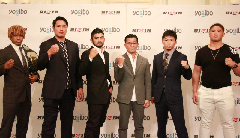 会見に出席した(左から)ベイノア、シビサイ、サトシ、RIZIN榊原代表、斎藤、スダリオ
