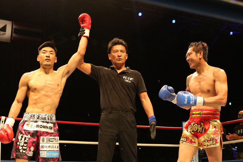 判定勝利した佐々木(左)、ラット(右)との試合のジャッジが変更に