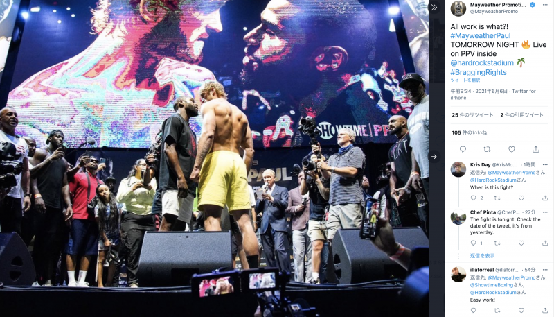 互いに睨み合う@MayweatherPromoより