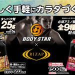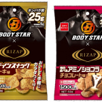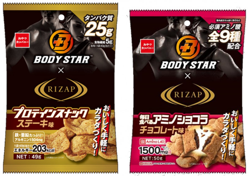 「ライザップ×BODY STAR プロテインスナック(ステーキ味)」「ライザップ×BODY STAR 毎日食べるアミノショコラ(チョコレート味)」