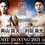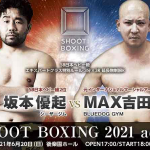 前戦となる今年4月大会、107kg巨漢のチャンと真っ向から打ち合う坂本(右)