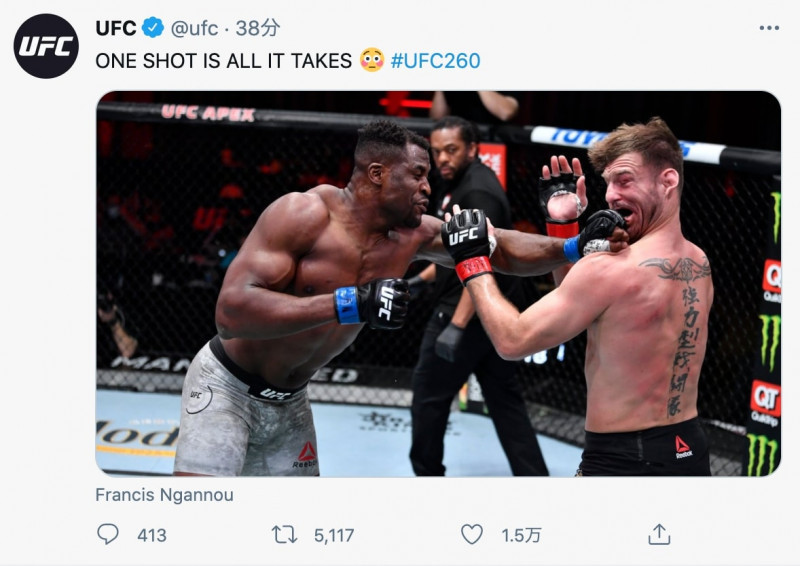 ガヌーの左フックがミオシッチの顔面を直撃した瞬間(UFC公式SNSより)
