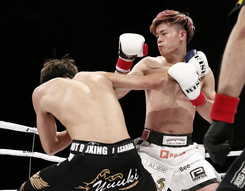 昨年7月、那須川天心(右)はRISEで対戦相手が見つからず公募、笠原友希(左)と対戦した