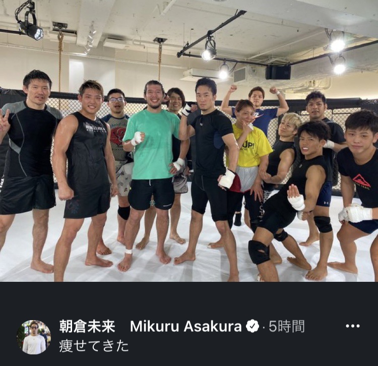 この試合に向け、朝倉は渡辺華奈や上迫博仁、堀江圭功、柔術の岩本健汰らと練習を共にした@MikuruAsakura