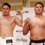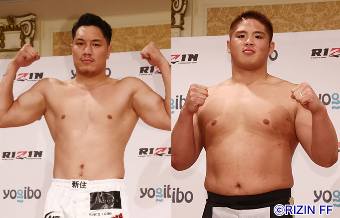 シビサイ(左)とスダリオは約7kg差、身長は190cm台でほぼ同じ