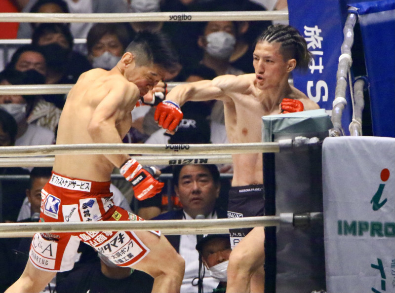 井上の強烈な右フックが当たる瞬間。この一撃が勝負を決めた