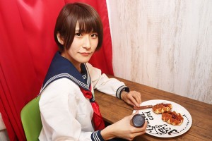 「黒タイツカフェ」にて「デコれーしょんワッフル」にウサギの絵を描いてくれた来栖うさこ