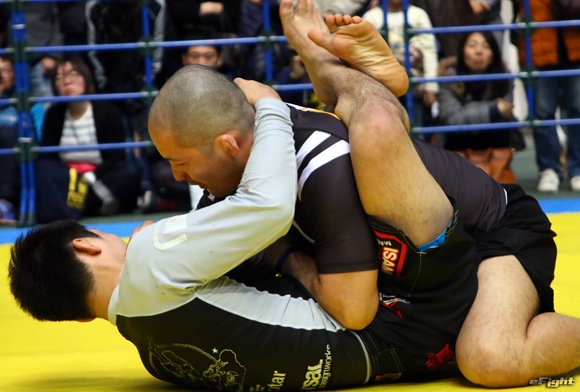 「RIZINオープニンググラップリングトーナメント」の決勝戦で一本勝ち、賞金を獲得した時の八隅(上・2015年12月)