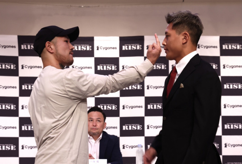 大雅(右)にいきなり中指を突き立てる中村(左)(C)RISE