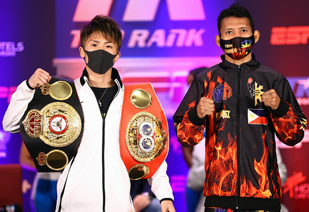 井上尚弥(左)とダスマリナスが試合2日前の会見に挑んだ(c)Getty