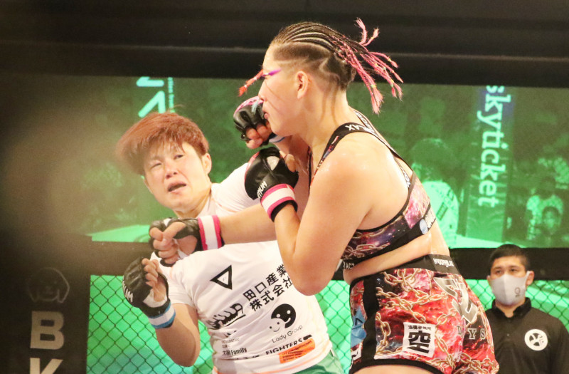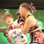 レイナの圧力に引かず、的確にジャブを当て続けた東