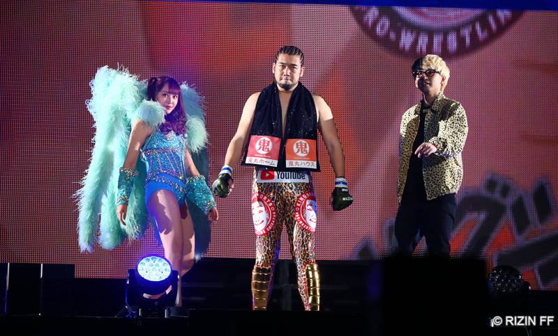 てんちむがセクシーなダンサー姿でシバターと共に入場するシーン