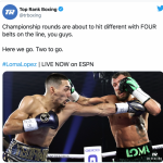 前回のロペス戦、パンチをかわし、右のカウンターをヒットさせるロマチェンコ( TopRank Twitterより)