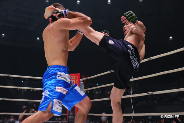 ハイキックを放つ矢地