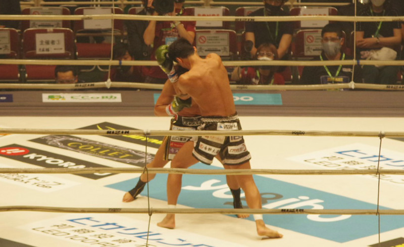 皇治(奥)の頭が梅野にバッティングするシーン