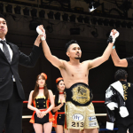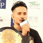 16秒でKO防衛した新美(右/2021年6月)