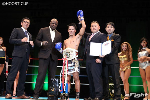 ISKAムエタイルール世界スーパーライト級王座戴冠時の大石(2017年9月)