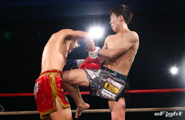 ヒザ蹴りを突き刺す実方(右/2018年12月)