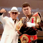 強烈なパンチを打ち込む高橋=19年9月「WYBC(ワールド・ヤマネ・ボクシング・チャンピオンシップ)」の第1回大会で勝利し新王者に
