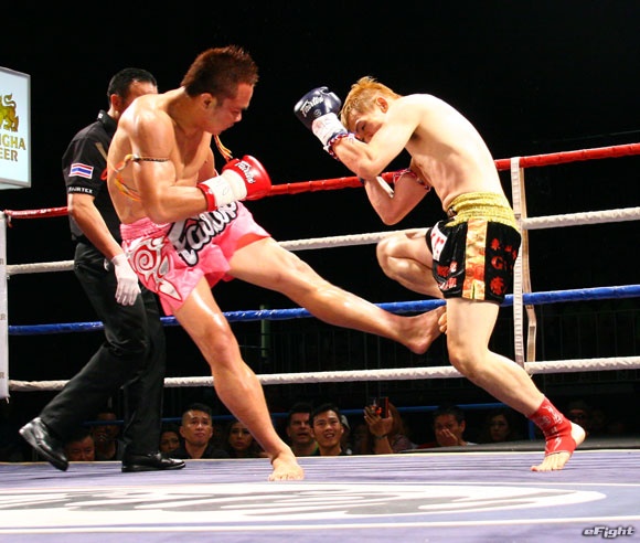 カーフのような低いローキックを放つゴンナパー(15年6月 WSUにて)