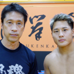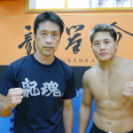 会見で、大雅(右)と“人獣”中村寛が乱闘寸前!スタッフが止めに入る(C)RISE