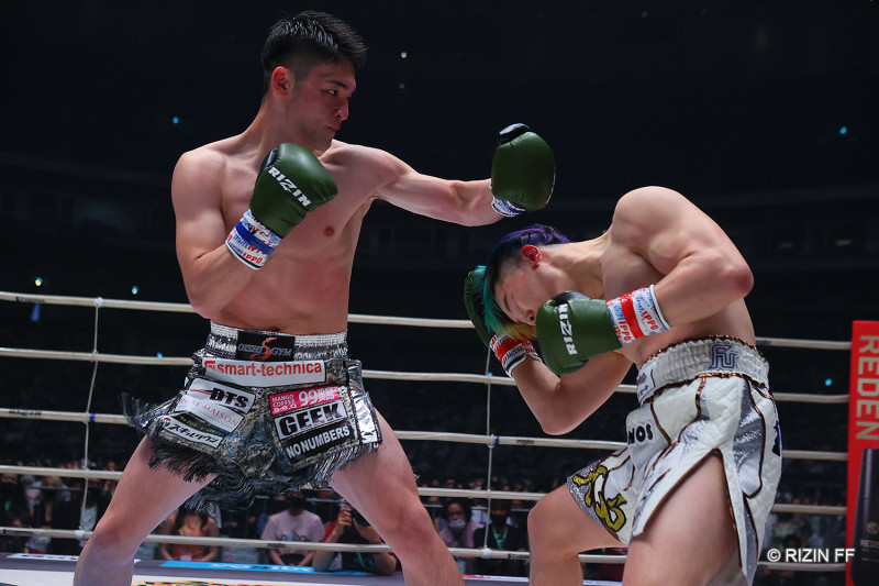 那須川天心に果敢にパンチを振るう大﨑(左)(C)RIZIN.FF