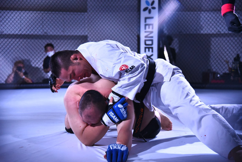 45kg重い対戦相手に、最後はパウンド連打で59秒KO勝利する菊野
