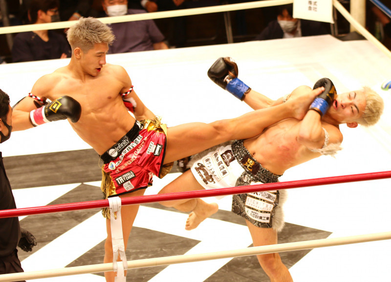 前戦で見せた龍聖の伸びる前蹴り