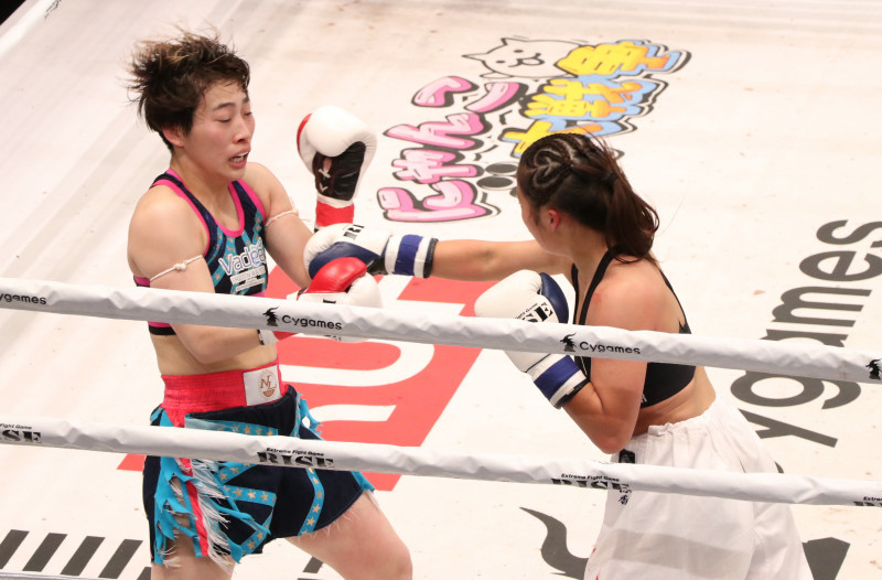 フルコン仕込みの田渕の突きが、現王者・小林愛三にクリーンヒット
