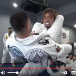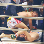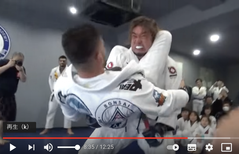 クレベルの三角絞め状態から持ち上げ、バスターを仕掛けようとするシバター(シバターYouTubeより)