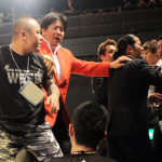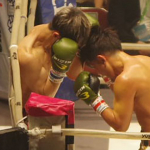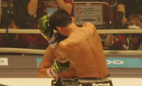 皇治(奥)の頭が梅野の顔面にぶつかる瞬間(拡大写真)