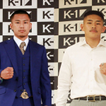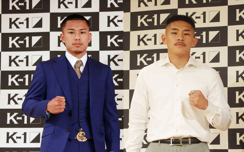 K-1福岡大会カード発表会見に出席した時の江川(左)と中野(右)