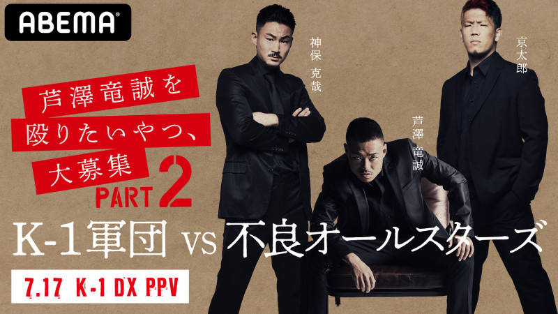 芦澤(中央)を筆頭に神保(左)と京太郎(右)が加わった「K-1軍団」(C)AbemaTV, Inc.(C)K-1